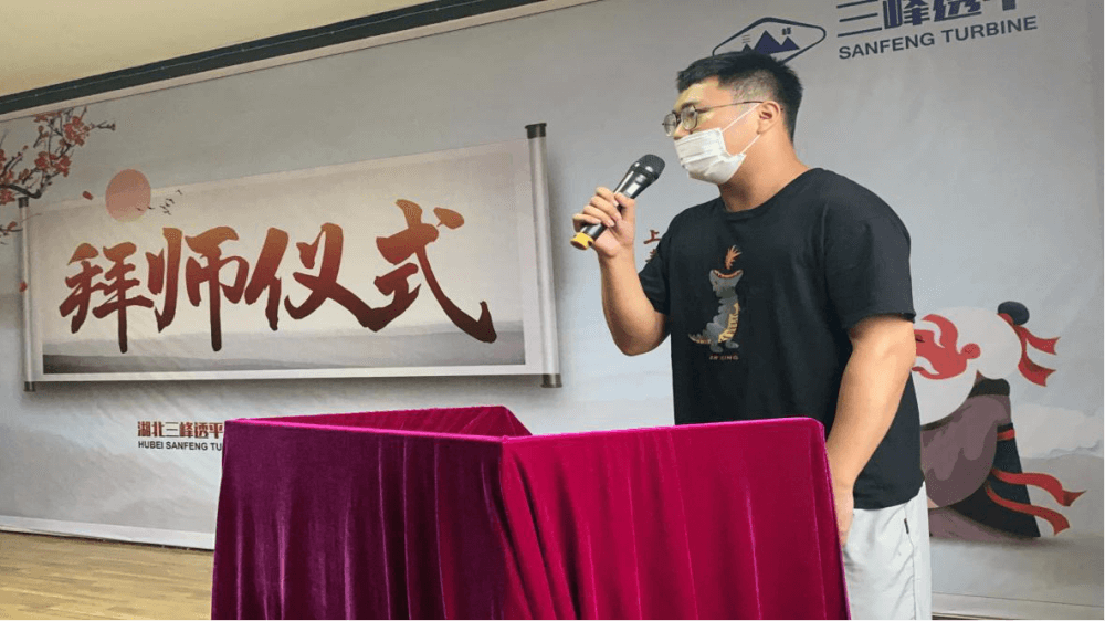 汪雨航作為徒弟代表發(fā)言,他代表全體徒弟對(duì)師父?jìng)兊南ば慕虒?dǎo),耐心幫助致以崇高的敬意!并表示愿意以師傅為榜樣,勤學(xué)、勤問(wèn)、勤聽(tīng),以真誠(chéng)的學(xué)習(xí)態(tài)度悉心進(jìn)取,盡快成長(zhǎng)為三峰的中堅(jiān)力量。